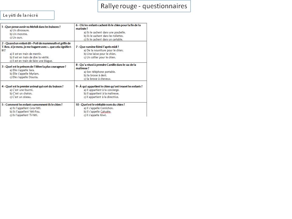 Publié le 23 avril 202027 avril 2020 Vous trouverez ci joint le fiche de lecture habituelle et à la suite votre questionnaire en fonction de la couleur de votre rallye. A renvoyer avant le 30/04 vous avez une semaine. Chargement… Par : NathalieLittérature
