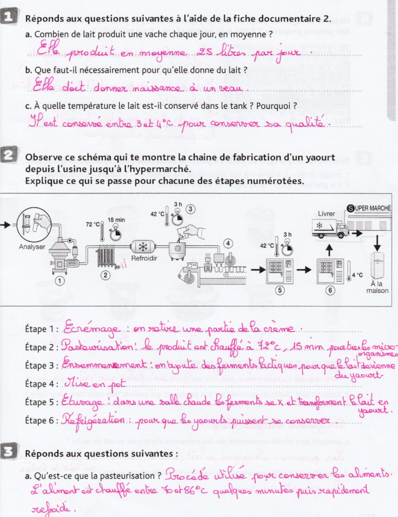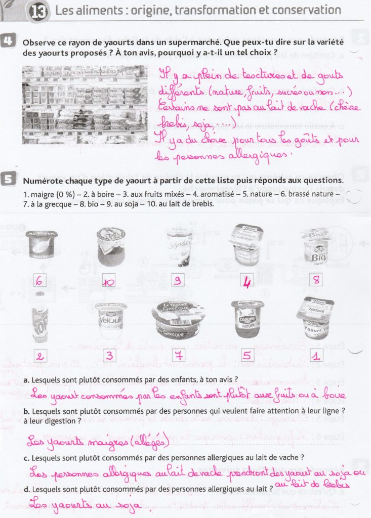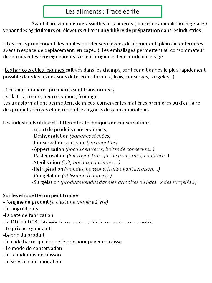 Ci dessous la trace écrite à apprendre concernant les aliments et la correction des fiches sur le yaourt.