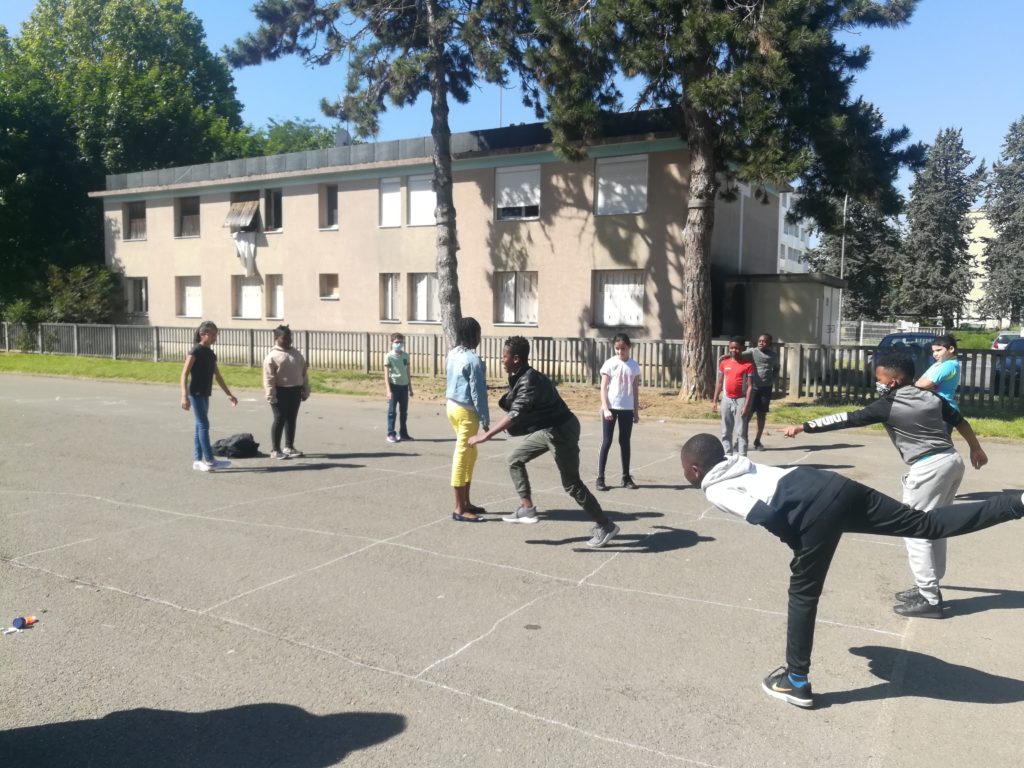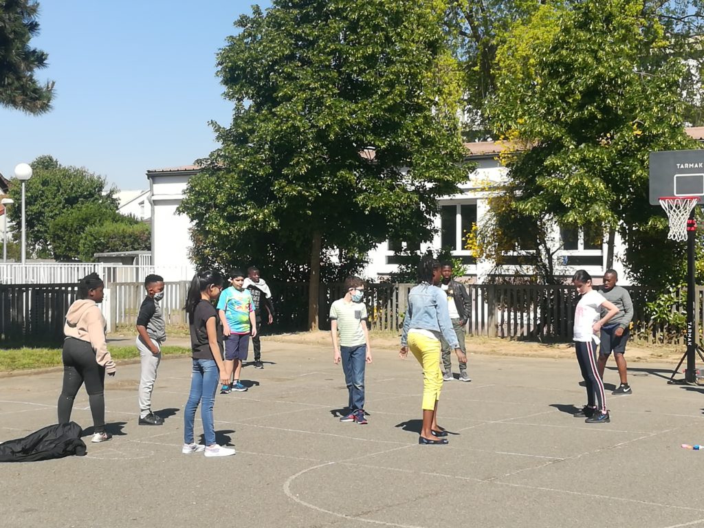 1. C’est un jeu de plateau avec des cases et des pions normalement. Cela se joue à 2, c’est comme un puissance 4 il faut aligner 3 pions en horizontal, vertical ou diagonal. On joue chacun son tour. Là ce sont les élèves qui ont fait les pions, on a fait 2 équipes.