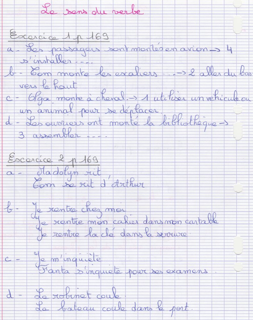 Publié le 6 juin 20206 juin 2020 Pour l’exercice 2 le verbe doit avoir un autre sens c’est à dire vous pouvez le remplacer par un verbe synonyme . Ex : couler –> Sombrer, se répandre, circuler, … Par : NathalieCorrections, EDL