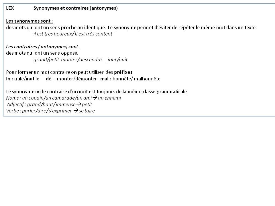 Publié le 11 juin 202011 juin 2020 Après avoir regardé les vidéos et lu la leçon fais les exercices 6 puis 4 p 172 de ton livre. Le synonymes Les antonymes Par : NathalieEDL