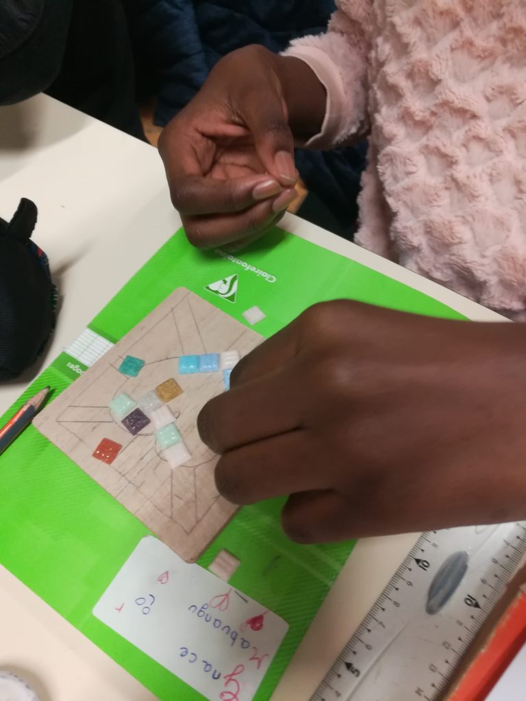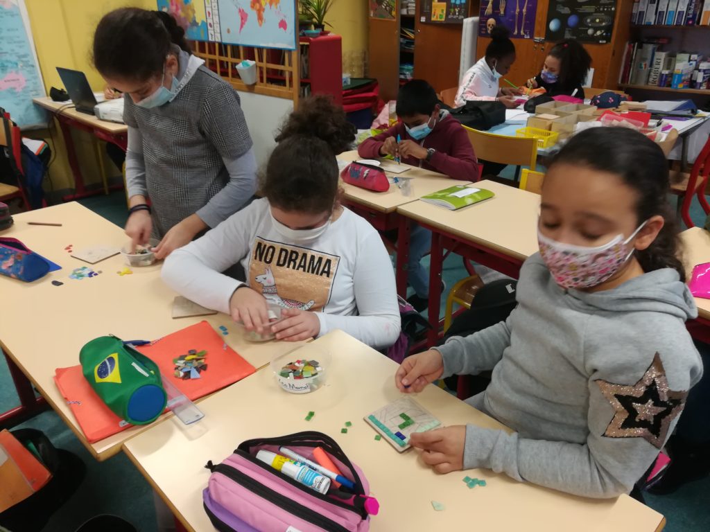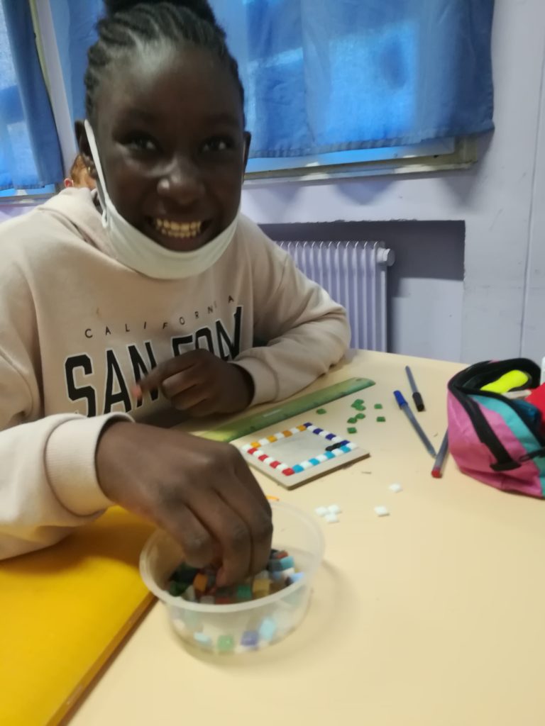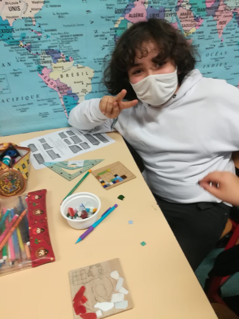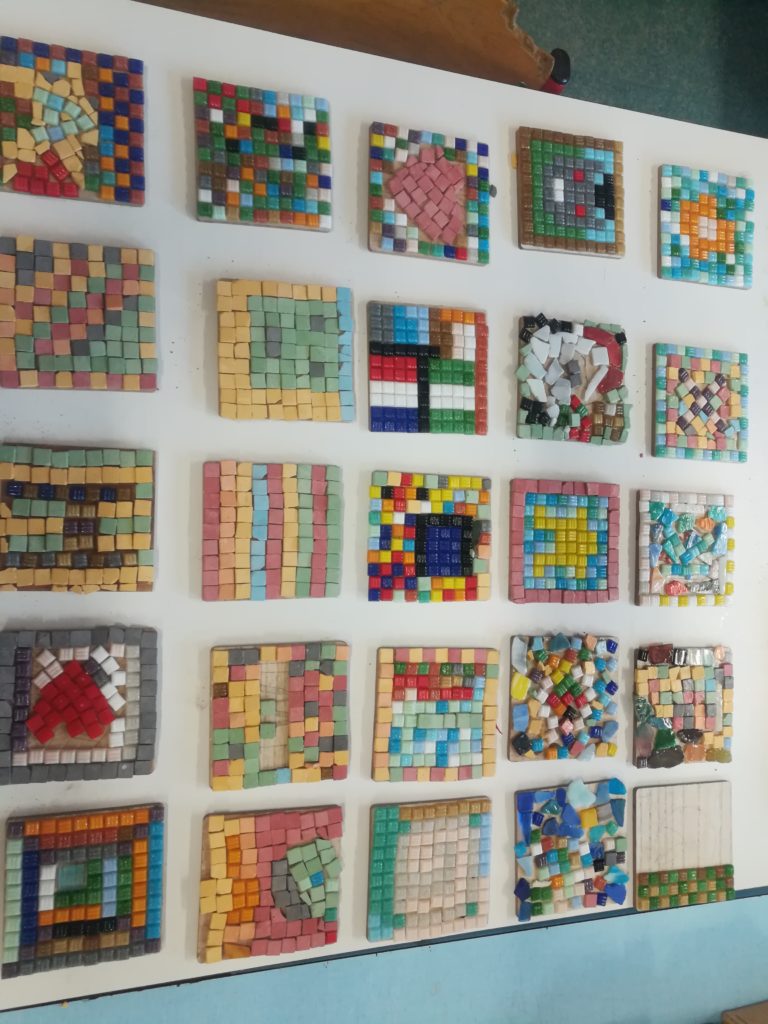 Après avoir travaillé sur l’art pendant l’Antiquité nous avons réalisé des mosaïques à l’aide de petits carreaux en pâte de verre ou en texture antique.