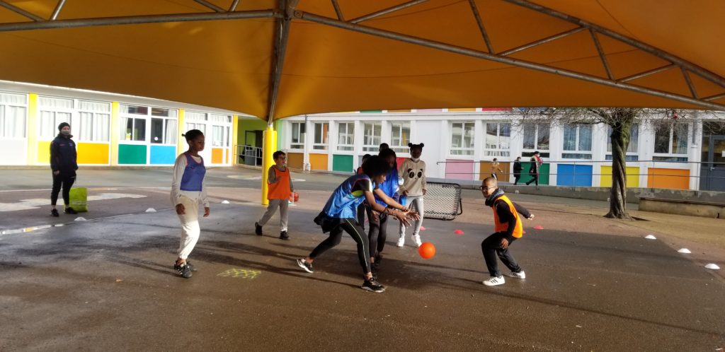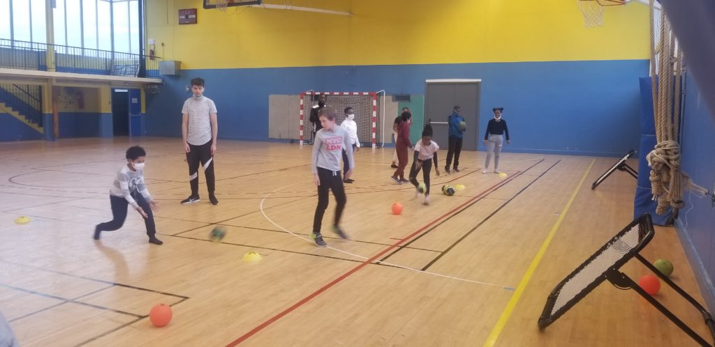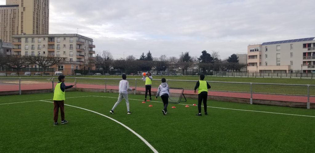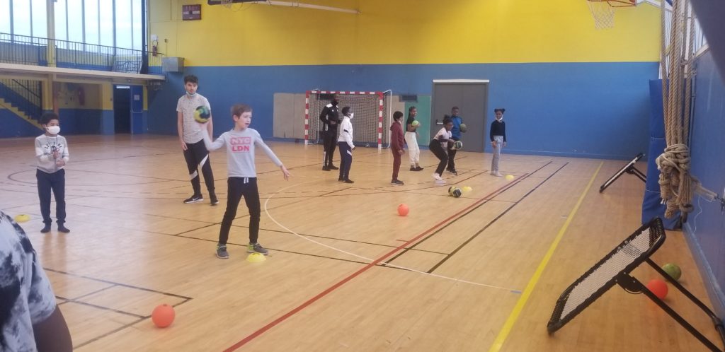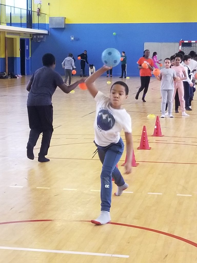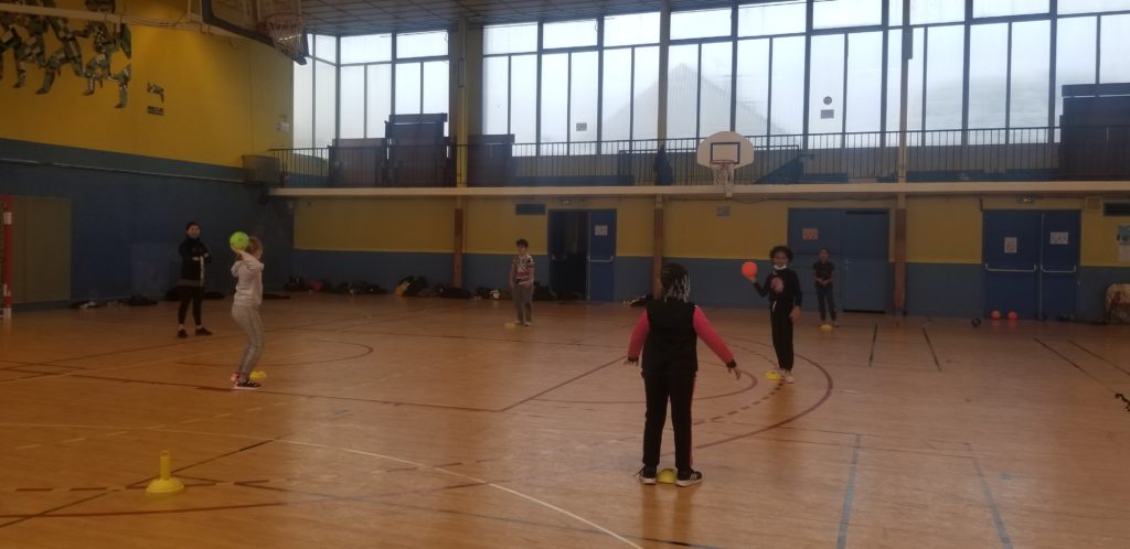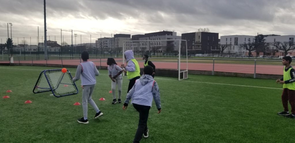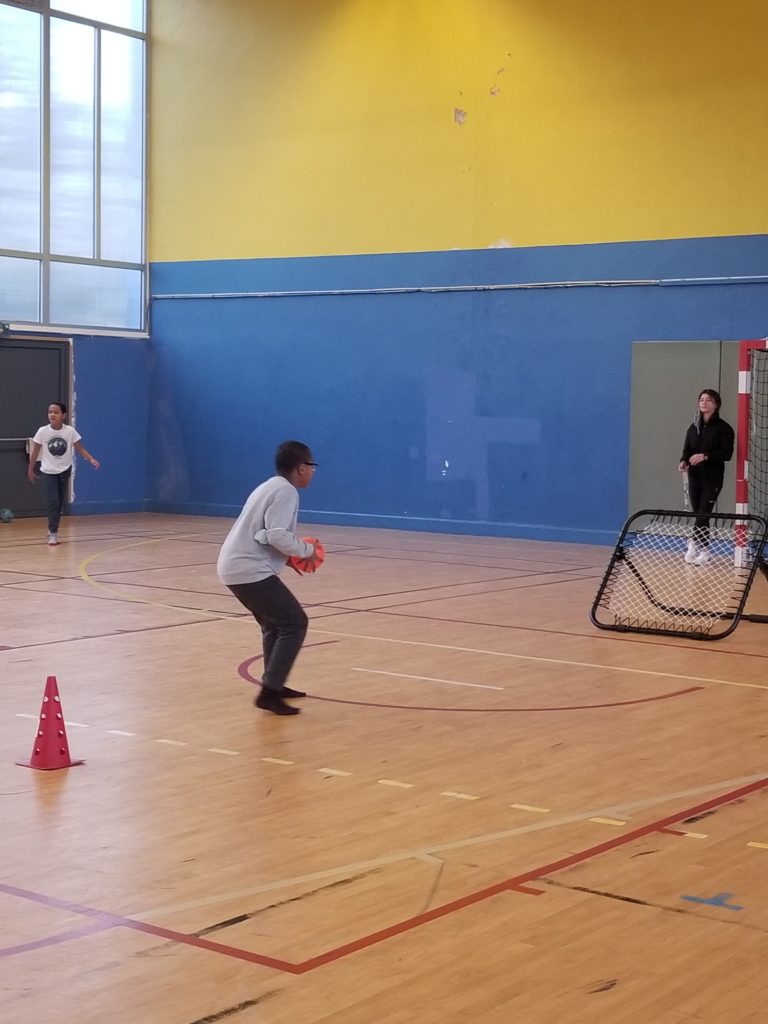 Deux équipes, une balle de handball et des buts ressemblants à des mini trampolines penchés. Entrainements au gymnase puis dans la cour pour s’achever par une série de matchs en plein air au stade.
