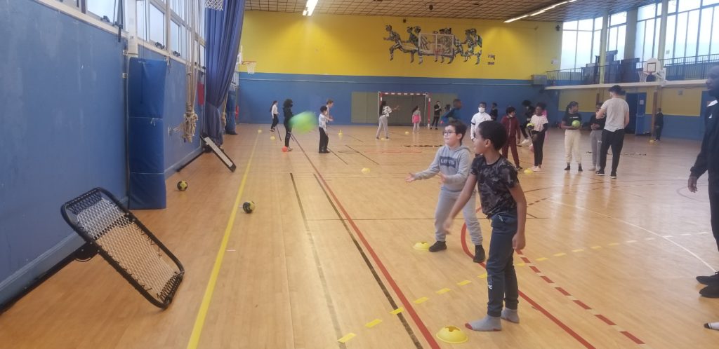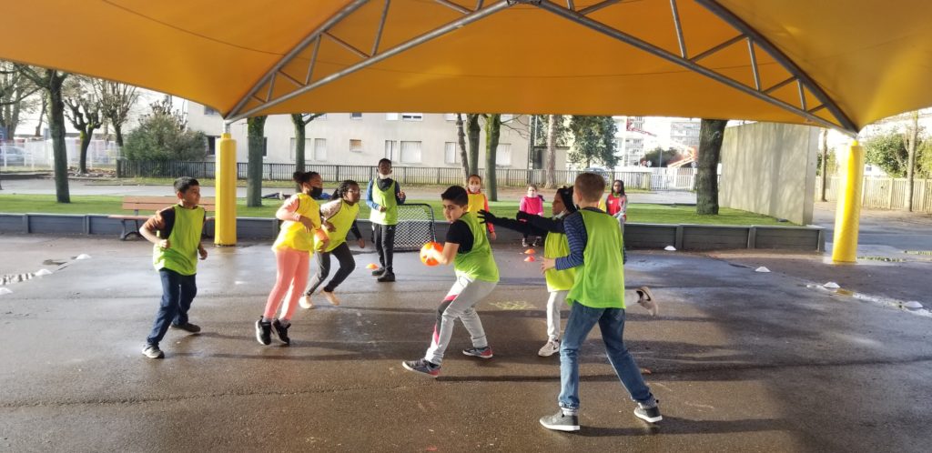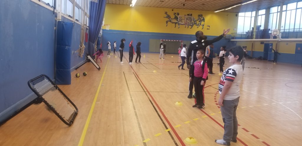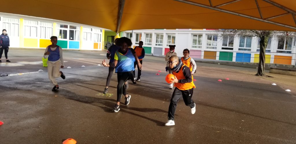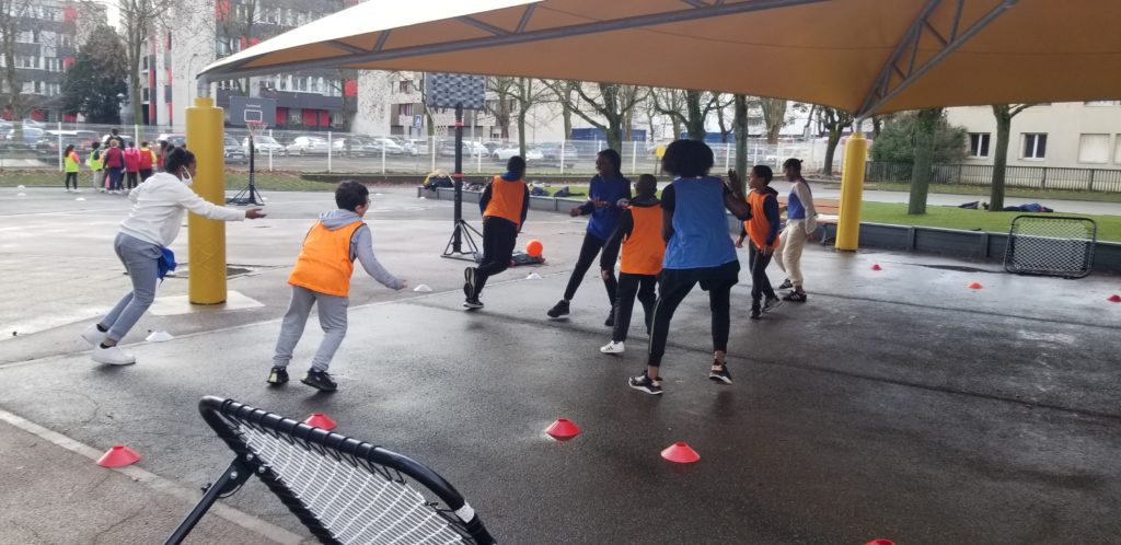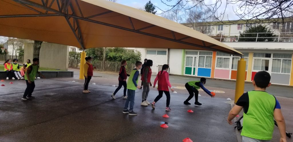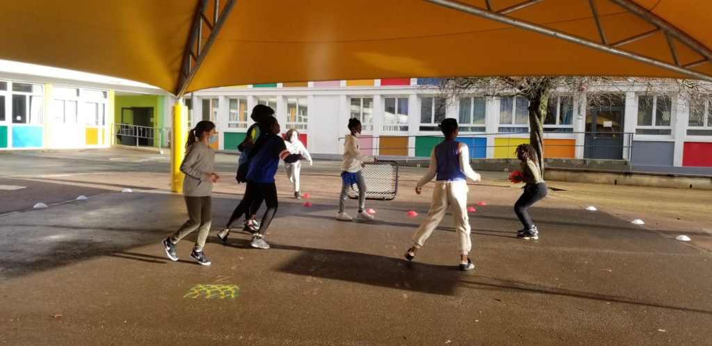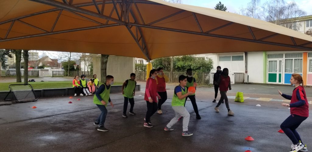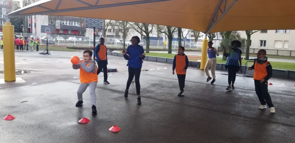Deux équipes, une balle de handball et des buts ressemblants à des mini trampolines penchés. Entrainements au gymnase puis dans la cour pour s’achever par une série de matchs en plein air au stade.